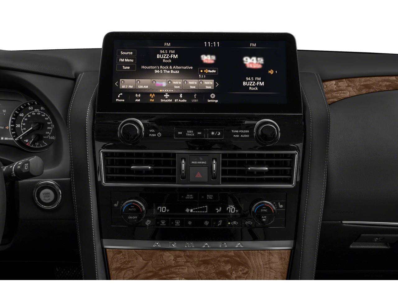 - Radio: NissanConnect w/SiriusXM -inc: 13-speaker Bose audio system, wireless Apple CarPlay, Android Auto, Nissan door to door navigation, 12.3" color display w/multi-touch control, SiriusXM Traffic and Travel Link w/3 month complimentary trial access, NissanConnect services powered by SiriusXM, Bluetooth® hands-free phone system, hands-free text messaging assistant and Wi-Fi hotspot
